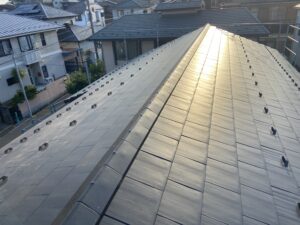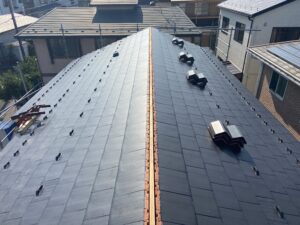 あと、上の写真の棟部に黒い板状の物がありますが、これは小屋裏の熱気や湿気を逃がす「換気口」となります。